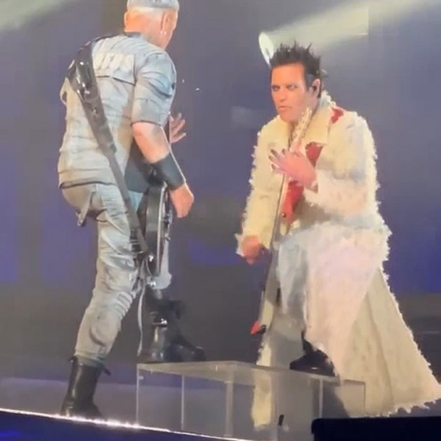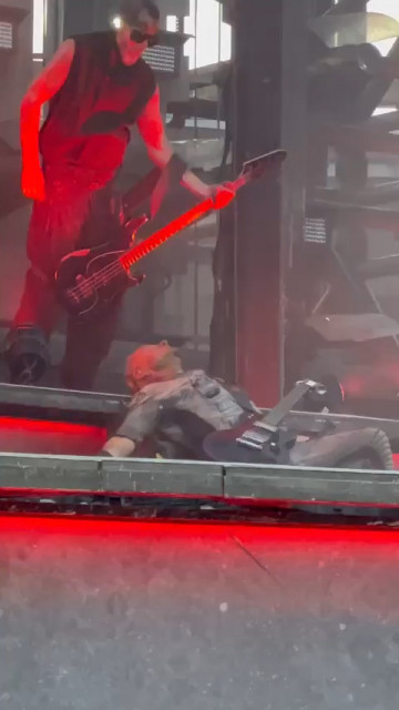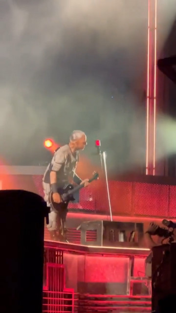 Повне МТ https://youtu.be/dfyjNDsoEPU не дарма герр не хотів йти на МТ – він ховався під барабанами, його Шнайдер змусив зжати яйця кулаком і піти до підставки і до неї. Після соло вона не повернулася спиною до герра – відступала до свого мікрофону задки, продовжуючи утримувати його своїм поглядом. Коли Тілль викотив котел, бідний герр втік на другий поверх і звідти під сцену. Повернувшись на сцену, герр трохи постояв і втік у свою підсобку – тут ніхто не засудить герра, йому життєво необхідно було випити щось заспокійливе. Дама не запокоїлася. Коли гітаристи зійшлися під барабанами, то стали тикати один на одного пальцями. Знову вони влаштували змагання йааа: дама завизжала на весь стадіон, а герра геть не чути було. Потім гітаристи переключилися на Оллі: герр тикав на нього пальцем, а дама лізла до нього.