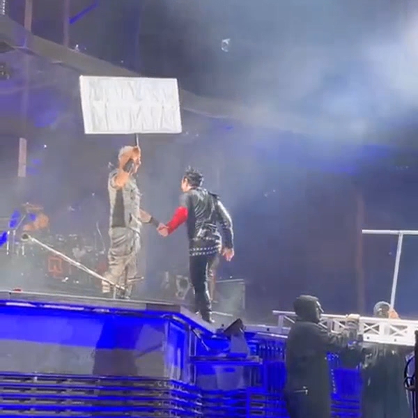 Звукачам Раммштайн повилазило? Вони не помітили, що Ріхард стоїть перед мікрофоном Пауля, і не включили Паулевий мікрофон, Ріхардове "Джермані" не чути було.