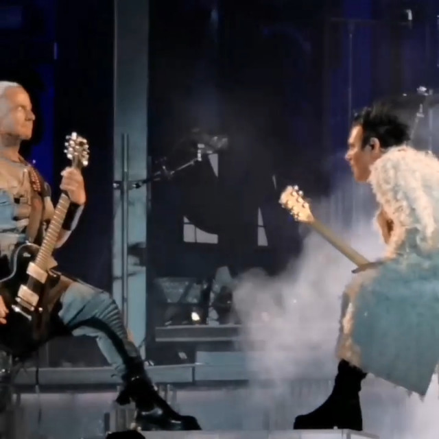 Дама була трохи страшна в Ґетеборзі: вона зробила зачіску як гребінь рептилоїда, ці загелені піки волосся виглядають агресивно, плюс даму підвела косметика, і у неї розпливлося праве око. Дивно, дама скільки концертів під дощем провела – і косметика залишалася бездоганною, а тут попливла. Може, дама спробувала щось нове, і експеримент виявився невдалим.