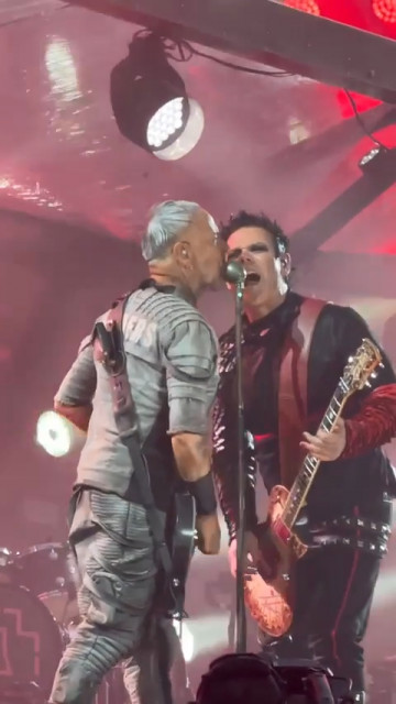 Пуссі https://youtu.be/mCM3ihfkz8U герр так і не прийшов до тями. Вийшовши на Пуссі, він відразу відправився до дами, проте посеред дороги зупинився, подумав – і все одно пішов до неї. Став поруч і насолоджувався. Дама не спішила йти на місце герра, лише коли герр відступив на крок від неї, вона витерла піт з лобика і пішла. По дорозі піднявши свій мікрофон. Щоб герр його не зламав, намагаючись підняти. Дама знала, що герр полізе до мікрофону – герр і поліз, зусилля дами вберегти мікрофон виявилися марними, герр став опускати і піднімати його. Це ж як герра контузило, що нехитра дія палки-телескопу викликала в нього таке захоплення. Герр через всю шеренгу показав дамі, що мікрофон у неї добрий, і притулився до нього губами. Він що, цілував мікрофон, якого торкалися губи дами? А дама рукавом витерла мікрофон герра. І свого носика дама витерла рукавом. На відміну від Дюссельдорфу, цього разу дама знала, як піднімати мікрофон герра. Гітаристи дуріли, аж поки Тілль не поїхав пушкою, тоді дама повернулася на своє місце. Коли дама наближалася, герр підняв до неї руку, вона йому захохотала, і вони зчепилися ручками.