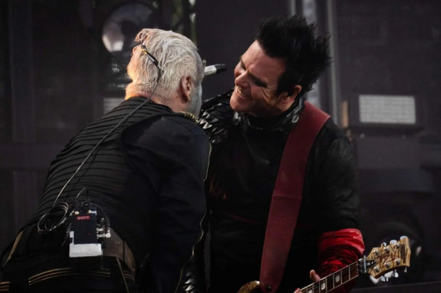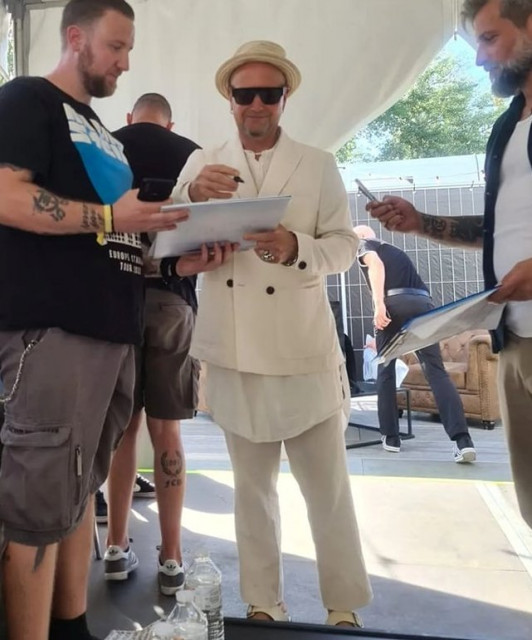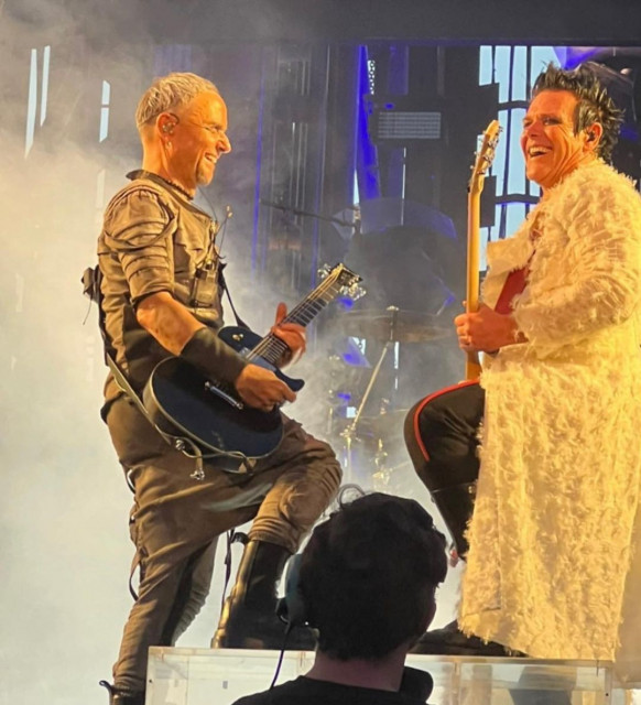 Повне МТ https://youtu.be/vmo_IT8LgeY герр сперся об заборчик, і, здається, наче він помазав губи гігієнічною помадою. Йому піт дами рота обпік? Далі герр став гратися уявним телефоном, потім пішов до Шнайдера і повеселився там. Біля барабанів гітаристи виконали стандартну програму. Спершу дама для годиться крикнула йааа, але потім розходилася.