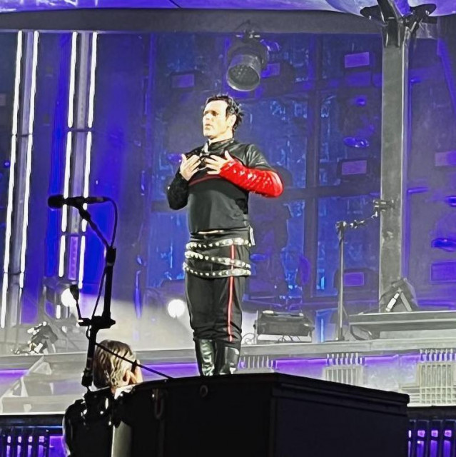 Армія https://youtu.be/51Wt_2gJtg0 Герр вискочив на сцену напіводягнений – без напульсників і кайдана. Стрибав, крутився, танцював, діставав колег, не з першого разу підняв свій мікрофон – занадто активний герр. І весь концерт робив свої жести руками, маскуючи судороги. Що це у герра так різко з руками погіршилося, концерти були з великими перервами, він мав відпочивати і не напрягати руки. А дама прекрасна. І ця прекрасна дама сяяла та посміхалася колегам.