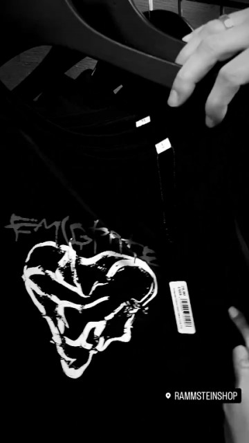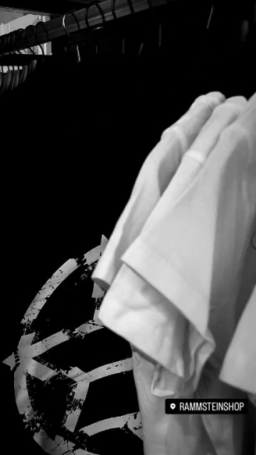 Зі сторіз Ліфад Юкрейн. Ось так виглядає личко папи й нова майка. Майка в папиних кольорах, і червоне тут явно трактується як кров. Кров, обличчя вампіра - ох, Ріхарде. Мерч новий, але виглядає, наче його ногами пинали на складі, робітники раммшопу хоч заради б сьогоднішнього івенту пройшлися по ньому відпарювачем.