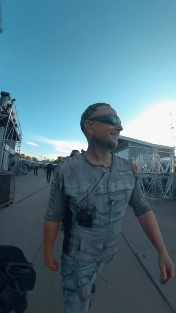 Яка милота, під час ритуалу з текілою гітаристи стоять поряд. А текіла власна, з раммшопу. А у Флаке щось інше в рюмці. Цікаво, чому у Пауля рюмка в лівій руці, не так уже й важливо йому окуляри правою рукою тримати. Щоб було краще чокатися з Ріхардом? Я б хотіла бачити, як вони чокаються.