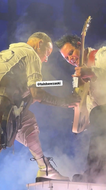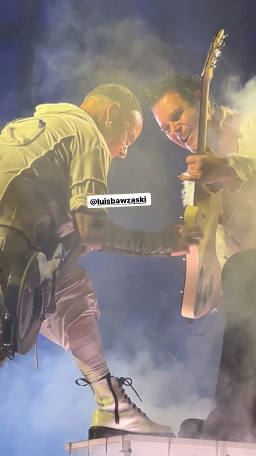 Бляяять, Пауле, що з Паулем на МНВ?! У нього вигляд як наче він медляк з коханою дівчиною танцює. Це що за вираз обличчя… Спершу Пауль сяяв своїй дамі, потім впав у настрій медляка, а потім тягнув своїй дамі губи. Дама сама трохи прифігіла з настрою герра, але сяючи кивнула герру й ворухнула губами, щось коротко сказавши йому напослідок. Бляя, цей герр… у цьому турі гітаристи зробили два визначних МНВ: коли вона трогала його пальці своїм пальчиком і оце https://www.instagram.com/p/Cuk1beEpuK6/