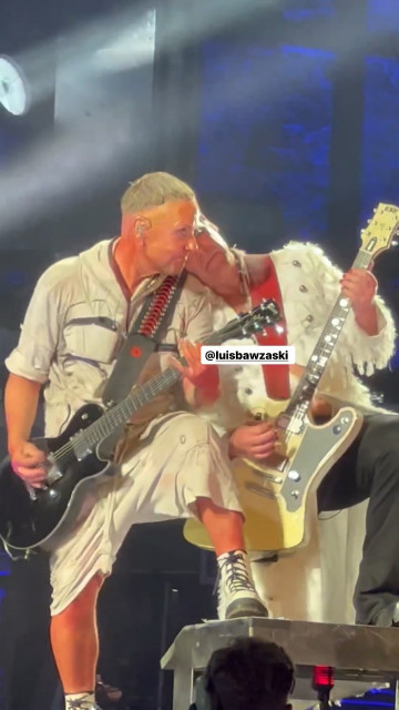 Блять блять блять. Вона настільки втратила голову, що після всього цього хотіла йти зі своєї підставки, забула, що вона у себе стоїть, а не у Тілля. Але чому вона не пішла на середину сцени? Вирішила поламатися, в недотрогу пограти? А от герр не ламався, він прийшов до неї і став ногою на підставці. Вона майже відразу поклала голову йому на плече. Ненадовго, поклала й піднялася, але все одно. А потім сяяла йому. Від того, що підставка Ріхарда маленька, вони реально впритул стояли, як вона умудрялася грати на гітарі, коли задниця герра була майже в гітарі, дама граючи терла рукою по задниці герра. Вона дограла, дала йому гітару, потім він поклав руку їй на плече, вона поклала руку йому на талію – в вона потягнулася цілуватися. Солодкий поцілунок у губи. Оце герр сходив у гості https://www.instagram.com/p/CunQ5KwvjIK/