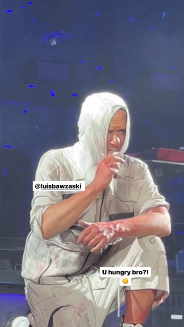 О Боже. Пауль знову їсть конфетті. Останній раз це було в середині туру-2019. Добре, що Раммштайн спеціально робить свої конфетті їстівними https://www.instagram.com/p/CundGwHN0ei/