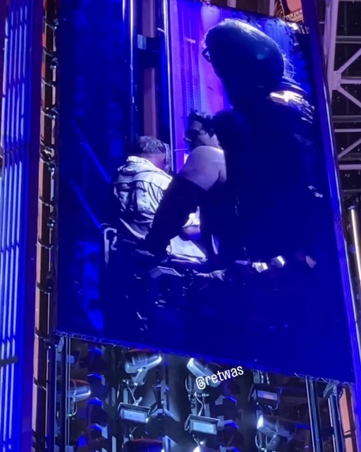 Не можу відірватися від ЦЬОГО. Як вони сяють один одному. Її рука, прижата до його стегна. Як вона силою притягнула його, щоб поцілуватися – не те щоб він упирався, але ця тендітна дама, яка тільки що лежала на сильному плечі, потягла герра так, що той похилився до неї. І все це вони робити на флангу сцени, не по центру. Скоро вони будуть інтро грати на лавочці за барабанами. І чим менше публічності й уваги – тим сильніше їх розбирає. У це МТ вони умудрилися впихнути все. Причому це дама умудрилася, вона все зробила з герром. Хіба що тільки не лежали на підставці, але з підставкою дами це хіба що тільки герр може постаратися скрючитися.