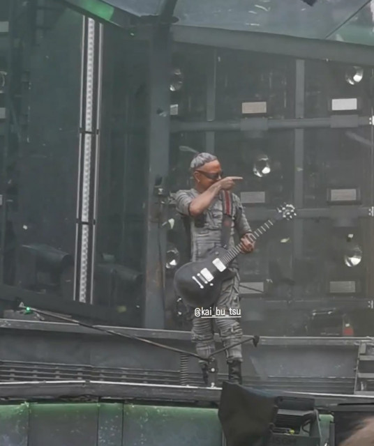 Почалося, лише на 6 хвилин Раммштайн запізнилися на сцену. Ріхард наче зі старою гітарою.