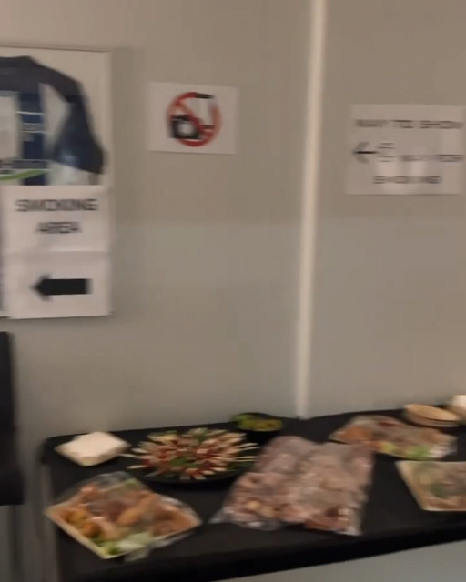 Якийся мужик-дизайнер засвітив кімнату для гостей бекстрейдж. Там два столи, на яких робітниці сервірують фуршет з нарізкою (відразу згадався райдер Раммштайн про 3 хлібини), хрінь для музики, а на стіні поверх спортивного інвентаря, який пропагандує здоровий образ життя, висить роздрукований на принтері аркуш А4 “smoking area” зі стрілочкою – ясно для кого, хоча Ріхард прямо в гримерці може курити https://www.instagram.com/p/Cu20f3io5kh/?img_index=1