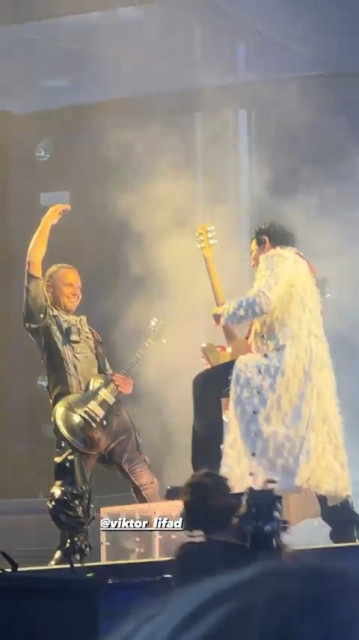 Танці на МТ теж пройшли без видумів, хіба що поки грали – герр заховався за спину Шнайдера. Але потім гітаристи поклали гітари на лавочку й стали танцювати: стояли на звичному місці й виконувати традиційні па https://www.instagram.com/p/Cu2u-FaNcon/