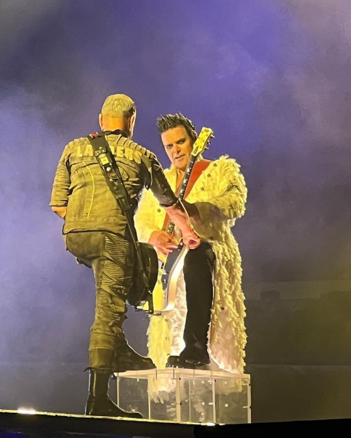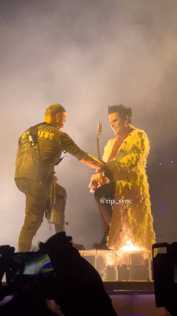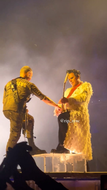 Коли гітаристи піднялися на маленьку сцену, Пауль, проходячи повз Ріхарда, помацав пальчиками плечико Ріхарда. Ріхард повернувся, і Пауль повісився Ріхарду на шию. А Ріхард у відповідь обійняв Пауля. Пауль, розліплюючись, провів долонею по руці Ріхарда. От що значить кілька днів розлуки, тепер гітаристів тягне один до одного. Сонечка https://www.instagram.com/p/CvLPQZvtt2l/