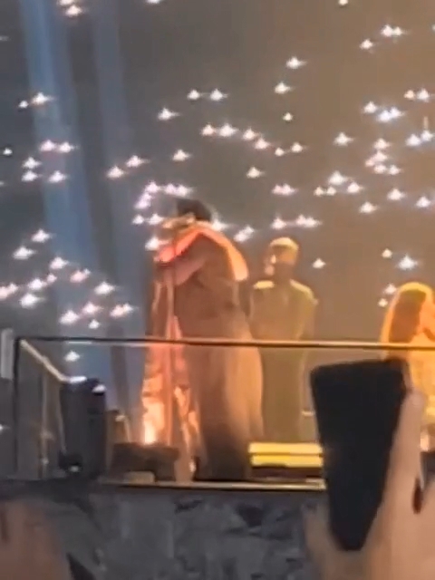 Блять. Ось фото з трохи іншого ракурсу – палець герра дійсно на внутрішній стороні стегна, це не оптична ілюзія. Що вони роблять перед усім світом… Причому ЦЕ не виглядає як розврат Королеви Блядищі з туру-2022, ні, це виглядає, як зустріч подружжя після розлуки. Законні супруги мають законне право. Але блять, не посеред сцени ж.