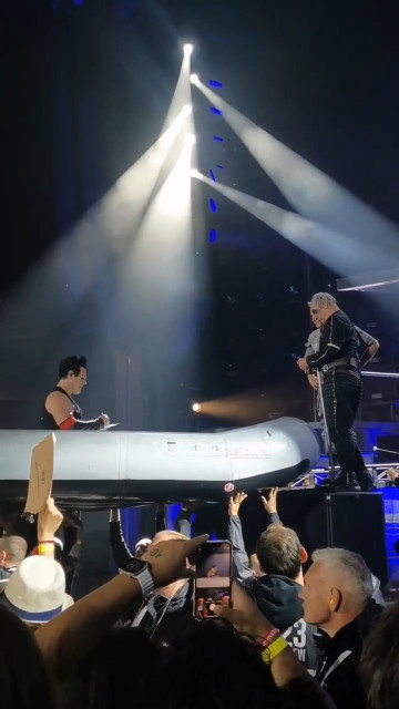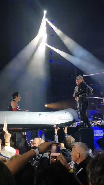 Під час висадки з лодок герр залишився на мостику. Оллі пробрався повз нього, вибираючись на велику сцену, а Пауль стояв, щось розказуючи Тіллю, і дивився на Ріхарда. Ріхард, побачивши герра в позі руки в боки, геть не став поспішати й продовжив сидячи в лодці підписувати свої карточки. Пауль налюбовався на Ріхарда, поговорив з Тіллем: вони жваво розмовляли, Тілль щось показував жестами, Пауль поклав руки на його передпліччя – і пішов, не чекаючи, поки Ріхард вилізе з лодки. Що правильно, гітаристи б не розминулися на мостику й полетіли б вниз. Ріхард знову якусь хрінь витащив з лодки і намагався впихнути її Тіллю. Тілль засміявся, відмовився й поклав руку Ріхарду на талію. Ріхард залишив хрінь собі й кинув її у свою підсобку