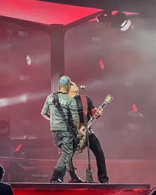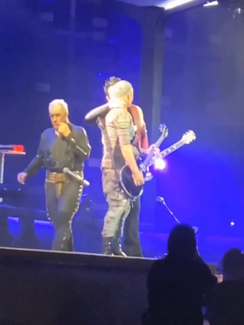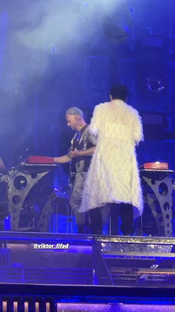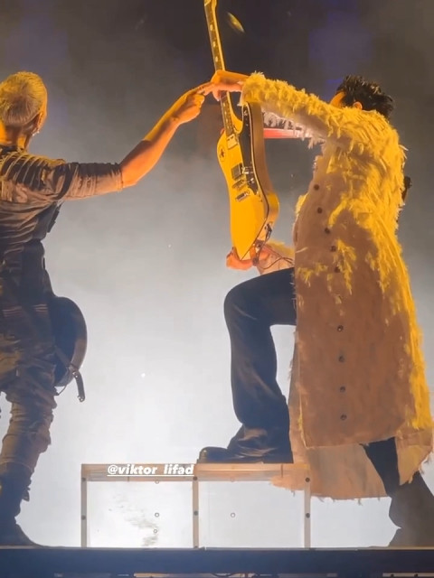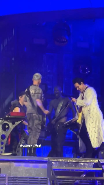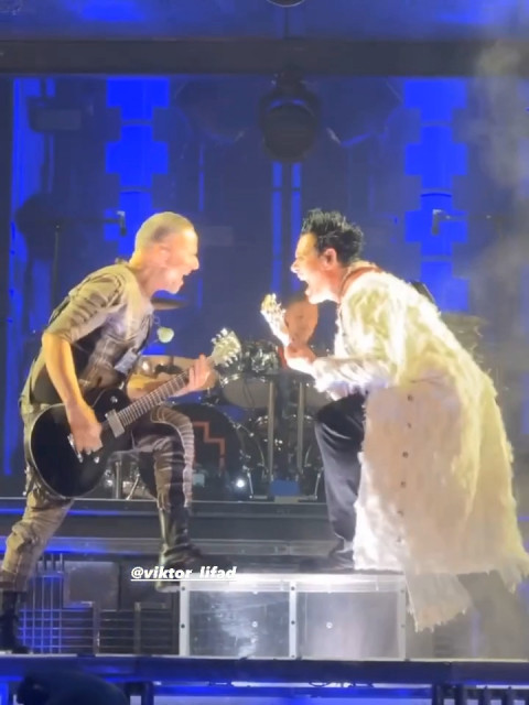 На МТ вона орала на нього. Давно вона не заводилася до припадків і криків на нього. Він теж поорав на свою кохану істеричку. Перед початком інтро Тілль поганяв герра, дама терпляче чекала на підставці, стали гітаристи один напроти одного з ніжками на підставці й давай нахилятися, випробовуючи силу своїх легенів. Фінішуючи інтро, вони розвернулися до барабанів, вона підняла гітару, і він погнався пальцем біля її пальчиків https://www.instagram.com/p/CvipNstowlE/?img_index=1