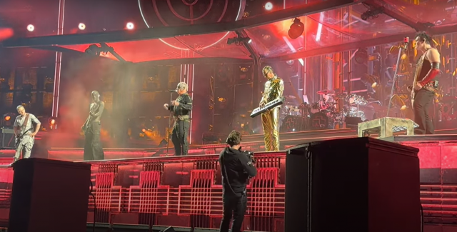 Бонус: перехід раммштайнів на маленьку сцену. У Ріхарда наче красива походка, він ставить ніжку перед ніжкою – але при цьому виглядає, що він ледве ноги волочить. Личко Ріхарда таке прекрасне – але погляд у нього страшний. Це око… він дивиться просто рандомно на людей, але погляд такий, наче він ненавидить усіх. І така втома на його обличчі. Ще й цигарка до губи прилипла. Пауль дурня клеїть, і тут це виглядає неприродньо. А позаду мило йдуть-гомонять зять і летц https://www.instagram.com/p/CxQEeNTtxjV/