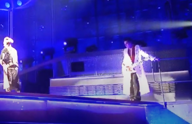 У перерві перед Раммштайн Ріхард не надів плащ, зате натягнув його перед Адью – чи замерз, чи щоб бути красивим на поклонах. Ріхард старанно прибирав поли плаща й коли ставав на коліно, й коли спускався по пандусу – але на цьому концерті треба було Тіллю слідкувати за собою. Тілль упав і скотився по пандусу під сцену, гупнувся він не дай Боже. Цікава реакція Ріхарда на падіння родича – ніякої реакції. Флаке подивився, як Тілль упав, Пауль глянув, навіть Оллі – а Ріхард кланявся народу й кидав медіатор. Лише розвернувшись, щоб іти кланятися далі, Ріхард мимоходом зиркнув на пандус, але не проявив жодної реакції. Це нагадало далекий 1996 рік, коли на концерті Раммштайн палаюча вивіска звалилася людям на голови, Тілль стрибнув у зал тушити її, кілька людей отримали опіки – а Ріхард спокійно продовжував грати. Дивний прояв «характера нордического», оскільки у Ріхарда величезне добре серце, і немає сумнівів, що Ріхард любить свого родича. Падіння Тілля було жорстким – про це свідчать не тільки звуки, які було чути в залі, а й те, що камеру під сценою не включили. Синій екран не демонстрував того, як Тілля піднімали й яку невідкладну допомогу йому надавали. Лише на мить екран показав вид сцени зовні, а потім там засвітилося лого. Однак Тілль – це Тілль, жодна травма не зупинить його від виконання свого обовязку, тож на балкончику він стояв як годиться.