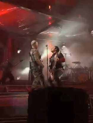 Ріхард відразу після першого «майн херц» пішов покрасувався під барабанами, потім покрасувався на підставці й прийшов до Пауля співати. Замість того, щоб проспівати слово «бреннт», Ріхард різко зігнув коліна і став як він любить: голова на рівні грудей герра, погляд направлений вгору. Розпусниця. І да, Ріхард не похудав, то в нього штани розтягнулися.