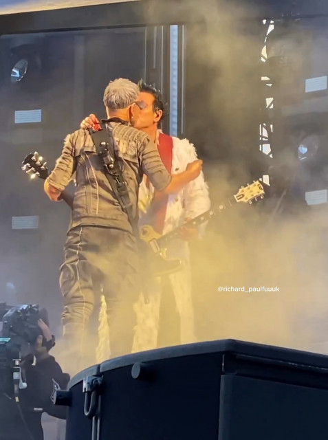 Енгель https://youtu.be/TZpVKbDQzII?si=oiCPYWmyNSNm4AG_ Аж перед Енгель Пауль зняв окуляри. Коли Пауль чекав на Ріхарда під маленькою сценою, то як на шесті вертівся на опорі сходів. Заплив із сердечками – наймиліша милота. Пауль половину дороги прижимав до себе сердечко. Біля мостика він взяв з лодки сердечко, вручив його Тіллю й поцілував Тілля. Ріхард дав Тіллю пакунок з вафлями й сердечко – яке Ріхард поцілував перед тим, як вручити, і Тілля Ріхард поцілував. Тілль пішов на сцену, несучи два сердечка двох гітаристів – і це так мило. Саме те, що обидва гітаристи дали сердечки Тіллю, що Тілль прийняв сердечки від обох гітаристів, має особливе значення. Подружжя та їхній дурнуватий, але любимий родич.