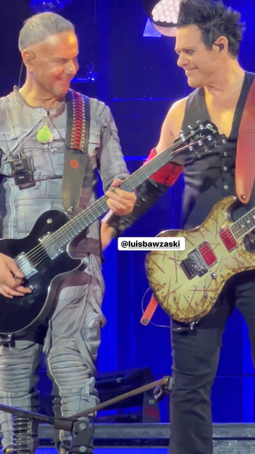 Фото, яке Ріхард фон Раммштайн опублікував 25 вересня – з цього МТ на Брюсселі-2. Жук Кох успів зробити фото за ті кілька секунд, коли Пауль відійшов від Ріхарда, а взагалі вони тоді отак стояли: Пауль знову підійшов і показував Шнайдеру на нову гітару Ріхарда.