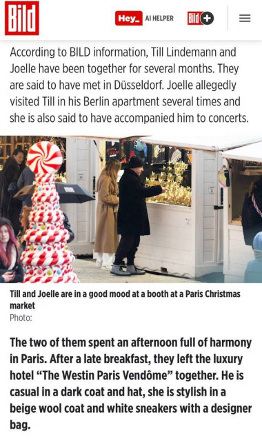 Коротко кажучи, Тілль зараз має відносини з 20-річною моделлю німецько-польського походження. Вони разом вже кілька місяців: познайомилися в Дюссельдорфі, дівчина була в берлінській квартирі Тілля, відвідувала його концерти. Дівчина супроводжувала Тілля в Париж на останній концерт туру, сьогодні вони разом повернулися в Берлін.