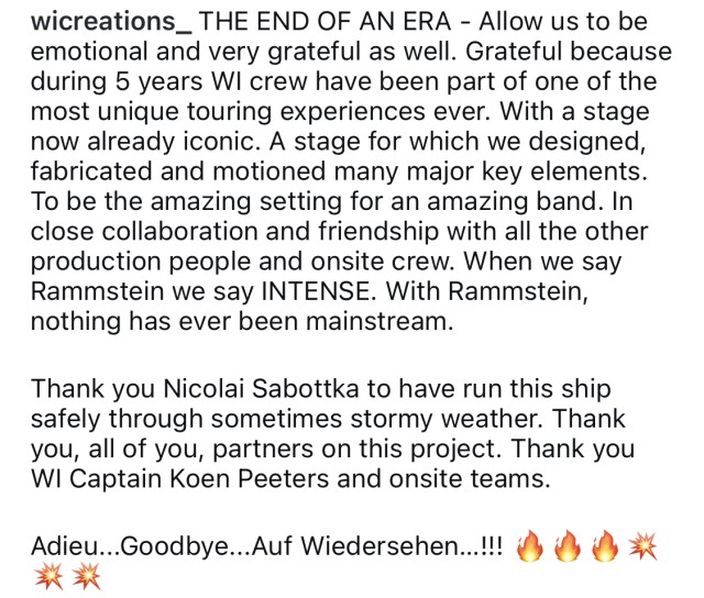 Розробники сцени Раммштайн сьогодні таке послання опублікували. Фірма, яка раніше зробила схожий пост - то будівники фізичної сцени, а це інженери.