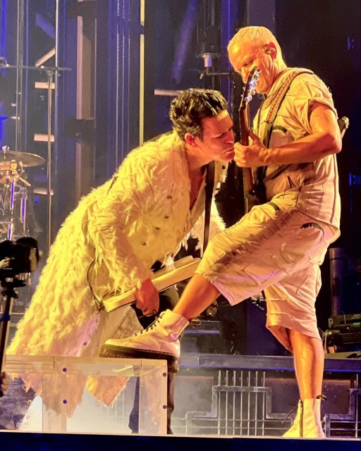Піротехніки Раммштайн серйозно? От вони оце серйозно? Силуети гітаристів. Це вже другий раз. Піротехніки зробили звітній пост про Гельзенкірхен, серія фото музикант+вогонь – і тут знову гітаристи. Разом. Їхній злитий силует домінує над вогнем, вогонь підкреслює єднання гітаристів. Шановні піротехніки, алльо, ви про що взагалі пост зробили? Фото робив Ніколай Саботтка, який керував туром, він постійно супроводжував раммштайнів – ох і надивився він на гітаристів, вони його пройняли.