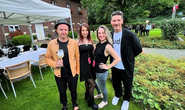 Пауль і Шнайдер з піанінними тьотками під час святкування закінчення туру, коли було зроблене фото на галявині. Пауль коли-небуть навчиться тримати бокал? Він як спеціально робить антагонізм відтопиреним пальчикам своєї дами. Погляд у Пауля такий, наче він не лише той компотик у бокалі пив.