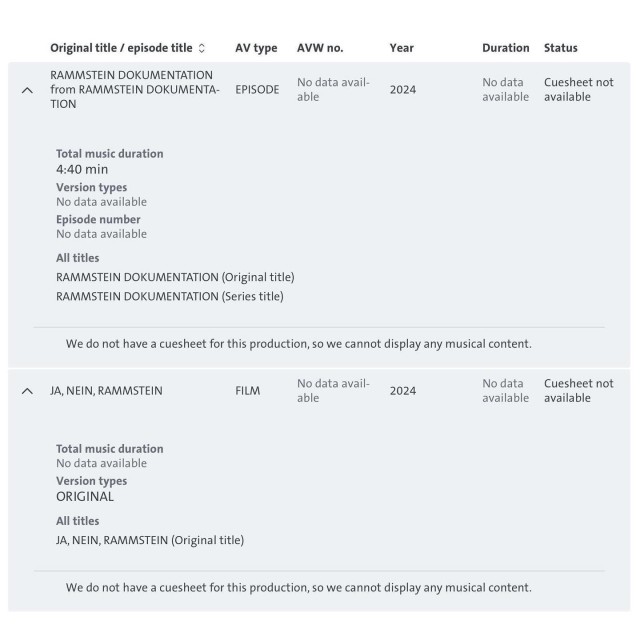 Документалка Раммштайн дійсно існує! Недавно її було зареєстровано в датабазі GEMA. Відповідно до інформації в датабазі, назва документалки – “Ja, Nein, Rammstein”. Дата реєстрації – 2024 рік. Документалка розділена на епізоди, довжина першого епізоду – 4:40 хвилин, назва епізоду “Rammstein Dokumentation”.