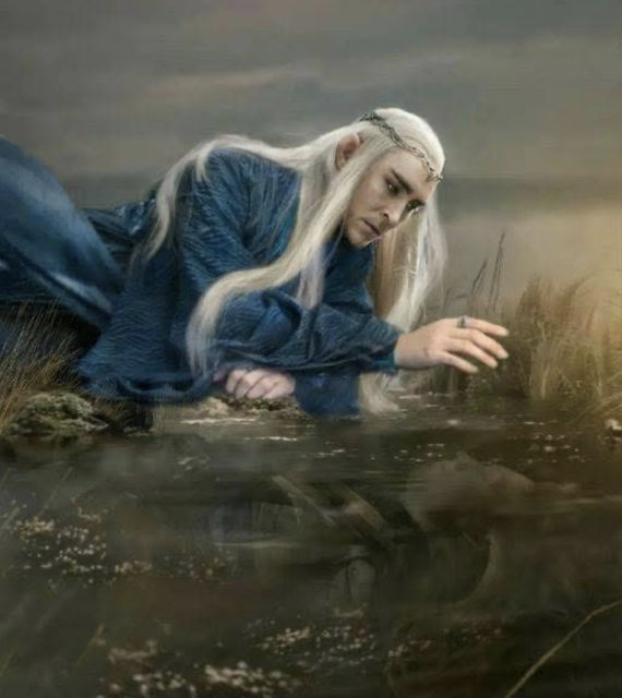 Жахіття, як цей малюнок… На щастя, Трандуїл ніколи не був у Dead Marshes, не бачив привид свого батька: могили затопило набагато пізніше, і після битви з Сауроном Трандуїл ніколи не повертався туди. А після того, як Кільце було знищене, болото мало очиститися від зла, і свічки покійників уже не світили…