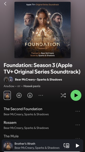 Мене ще взимку як вразив саундтрек Фундації, так досі не відпускає. Я його слухаю постійно, коли взагалі не думаю про серіал. Бажання окуклитися й плакати ніяк не притаманне моїй натурі, але чомусь мене тягне знову й знову відчувати ті емоції, які несе ця музика.