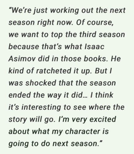 Nov. 1st, 2025 01:36 pmДнями Лі Пейс заявив у інтерв’ю, що зараз зйомочна команда пропрацьовує четвертий сезон «Фундації». Логічно, якщо зйомки призначені на початок 2026 року.